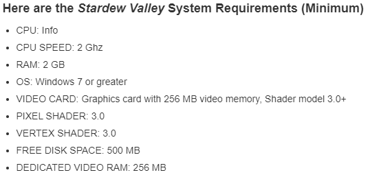 1. 스타듀밸리는 어느정도 사양이어야 돌아가나요? (스타듀밸리 사양)